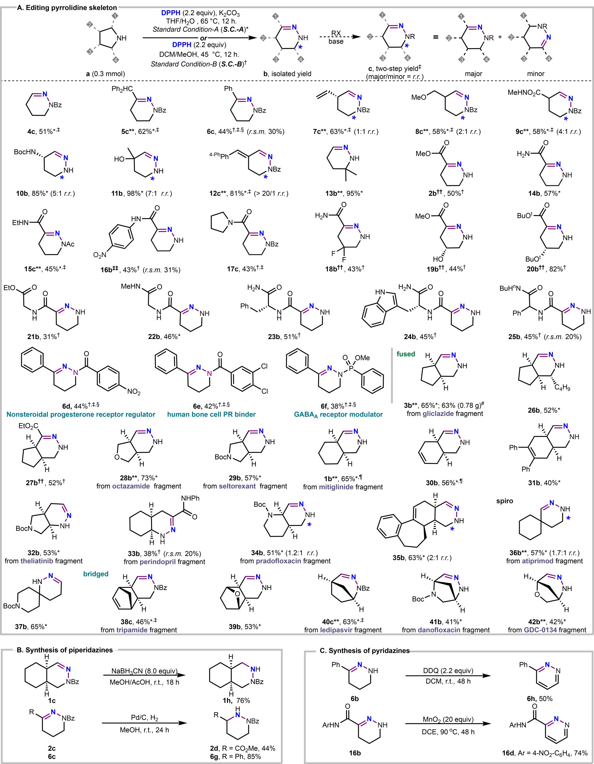 Fig. 3. Editing pyrrolidine skeleton and transformations of tetrahydropyridazines.
